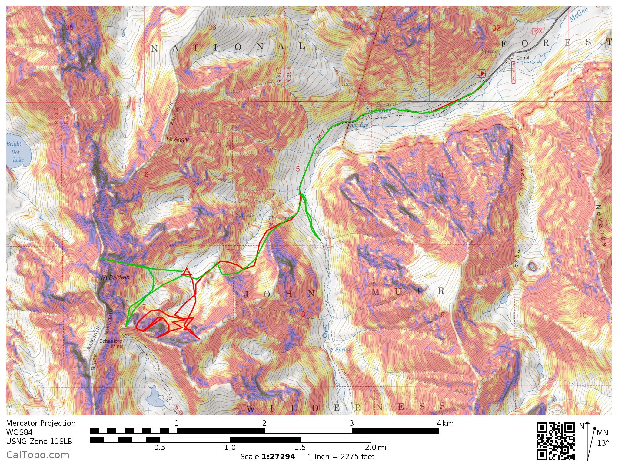We got back to the tent which had nearly blown away as I had decided that the weight in it was enough to keep it from blowing away, and I had almost been wrong. Clouds were now overheard and it was really breezing up so we moved fast to pack our bags and head down. An uneventful egress delivered us back to our car, the burger barn in bishop, and then beers in the hot ditch with a person from Inyokern who knew a lot about local abandoned mines.